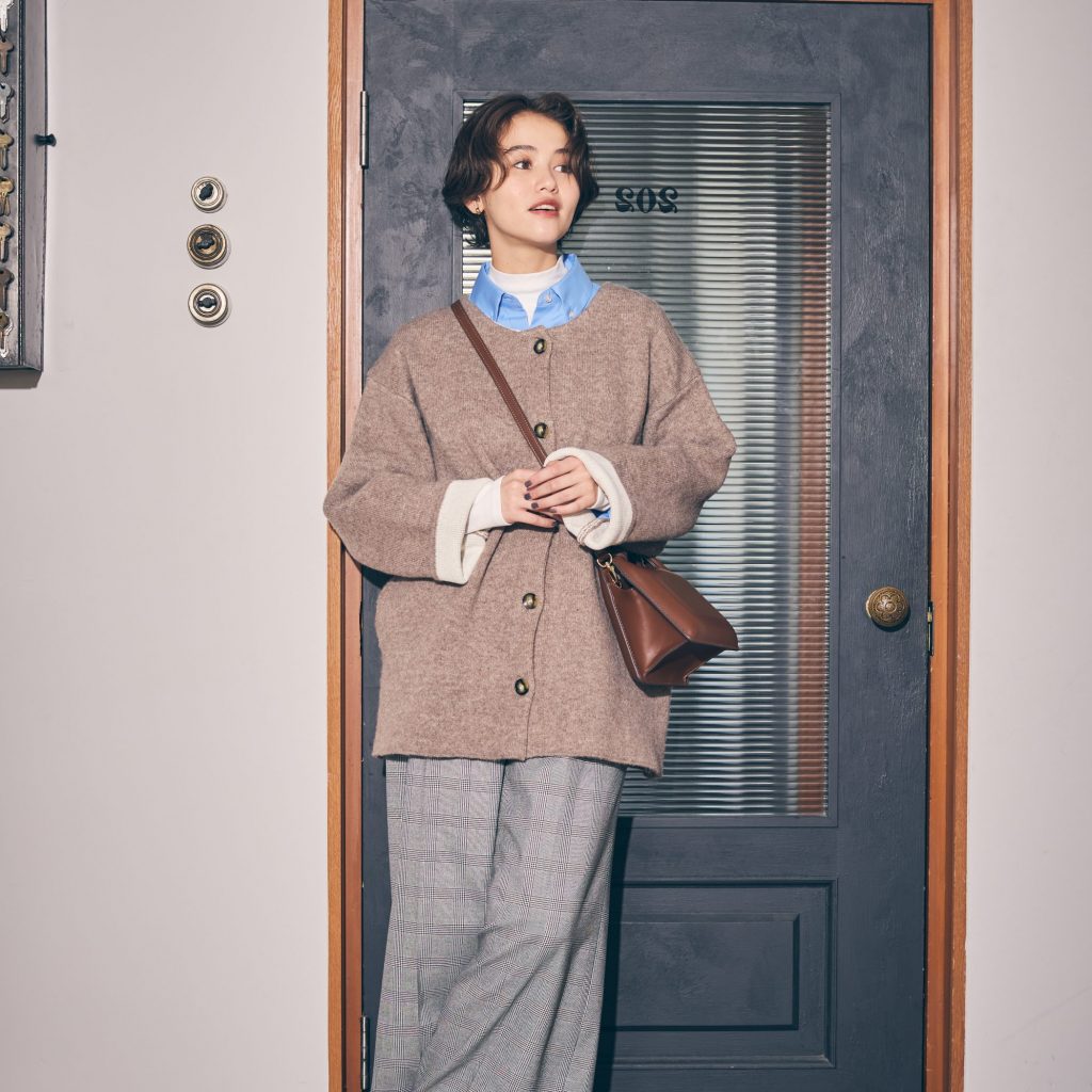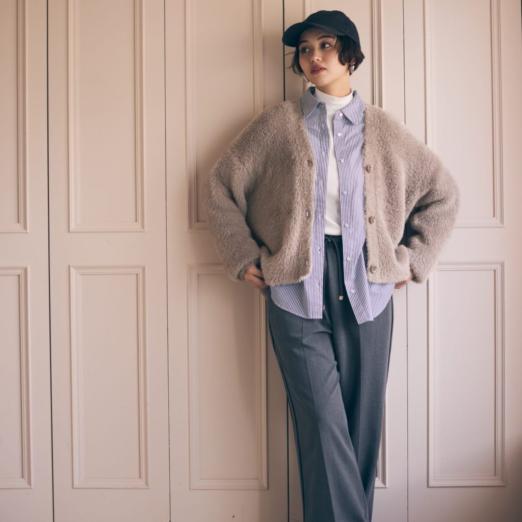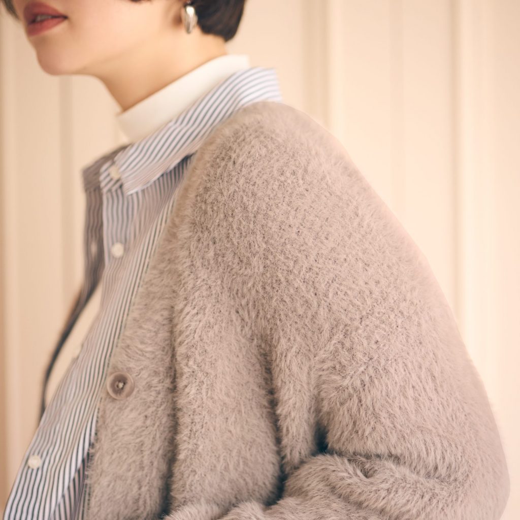 羽織るだけで秋冬ムードになるシャギーカーディガン。