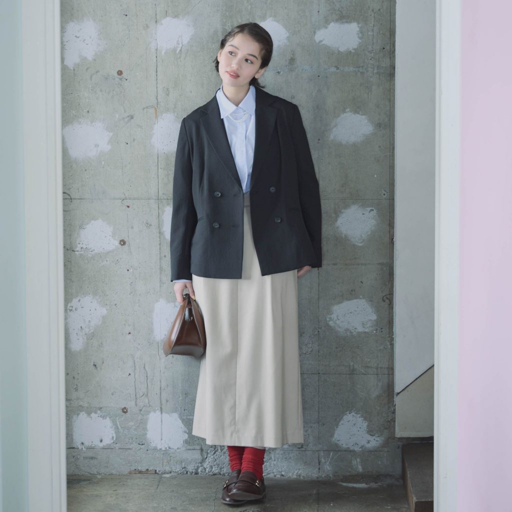 袖口のスリットが抜け感をプラスし、こなれた雰囲気に。