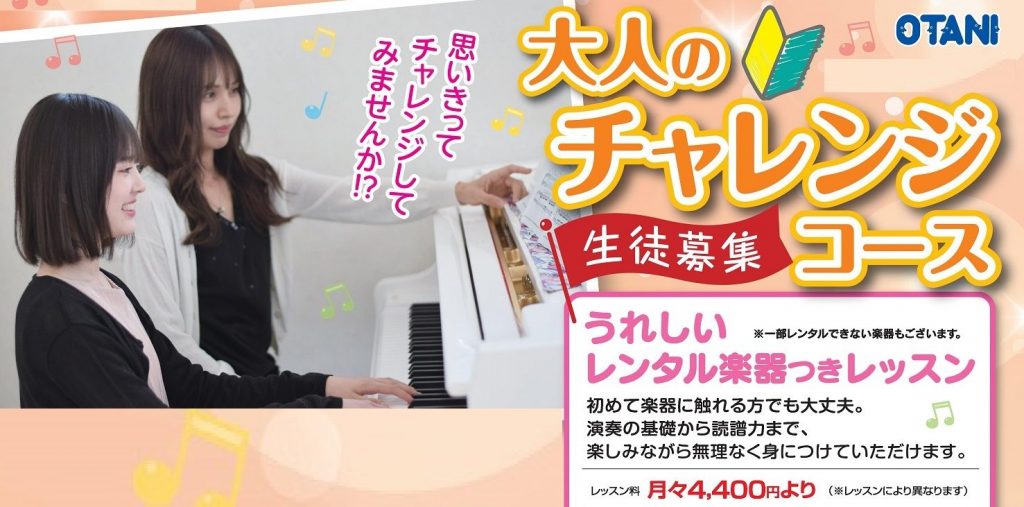 これから音楽をはじめたい方にぴったりのコースを多くそろえてお待ちしております。